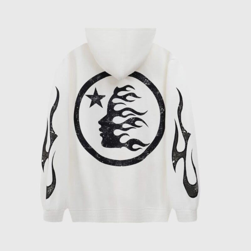 - Iconic Hellstar All Star Design: Featuring bold Hellstar branding and a distinctive “All Star” graphic, this designer hoodie lets you rep your unique taste. It’s instantly recognizable and perfectly encapsulates the brand’s edgy aesthetic.