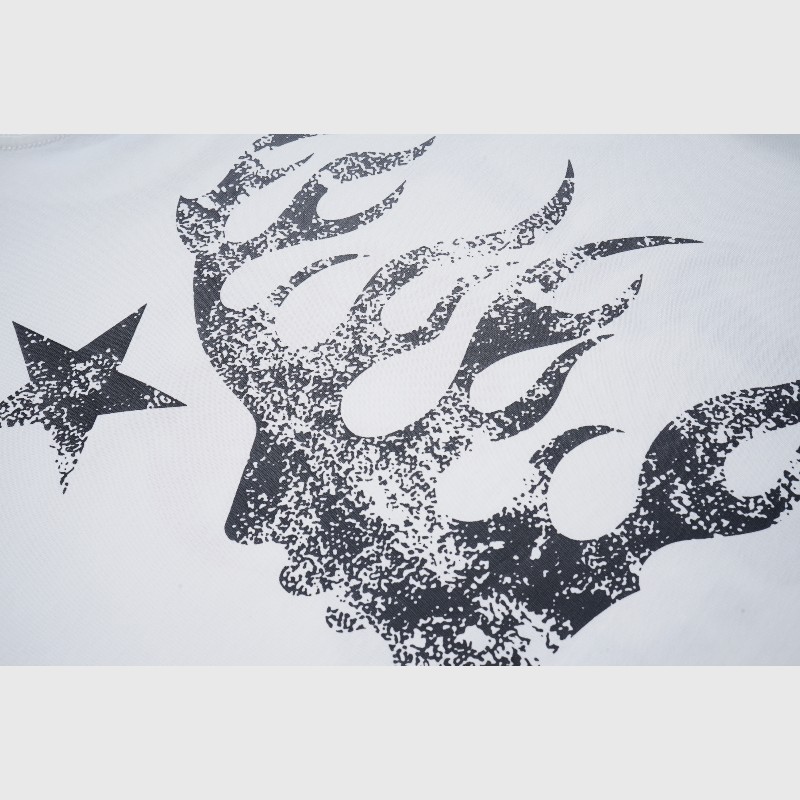 - Authentic Hellstar Branding: The Hellstar logo is prominently displayed in white at the bottom right of the graphic, affirming the authenticity and quality of this official Hellstar merchandise. There’s also the Hellstar neck tag.