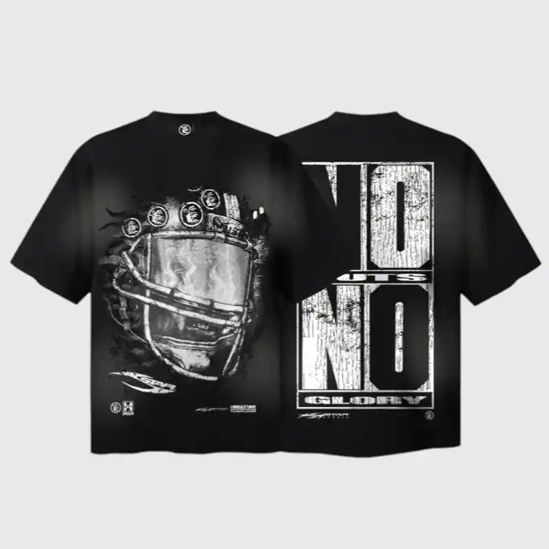- High-Impact Graphic: The centerpiece of this tee is the meticulously screen-printed racing helmet graphic. The “No Guts No Glory!” text is sharp, vibrant, and designed to inspire, making a bold statement about your drive and determination.