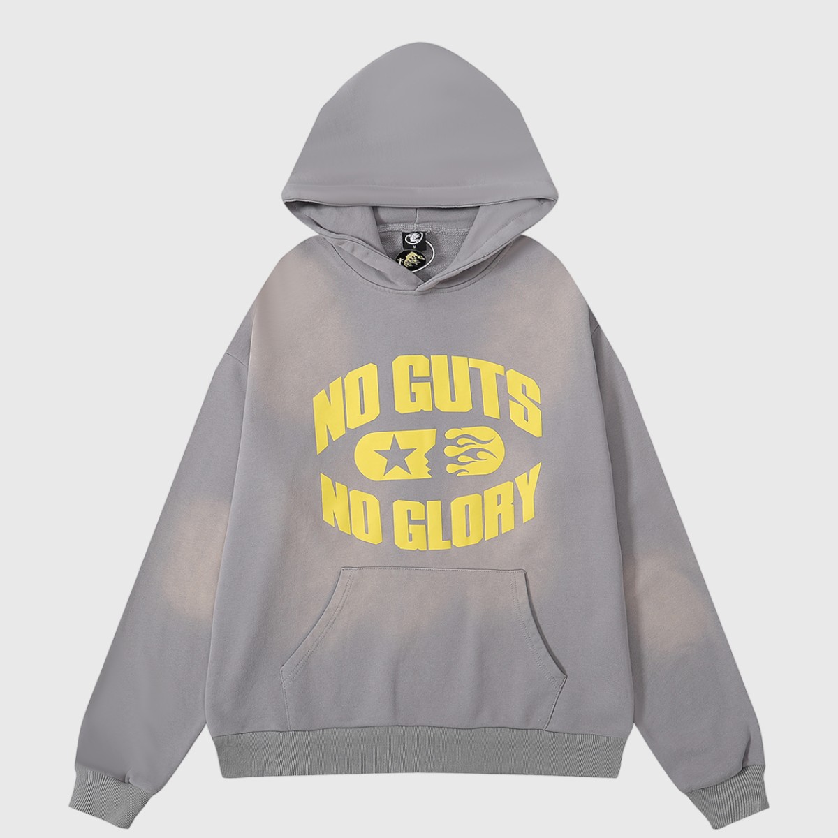 • Exclusive Design: The Hellstar No Guts No Glory Washed Hoodie showcases a large front slogan and the iconic Hellstar Studios flaming star head logo on the back, embodying the essence of Hellstar Clothing. This is the ultimate Hellstar hoodie for streetwear lovers.