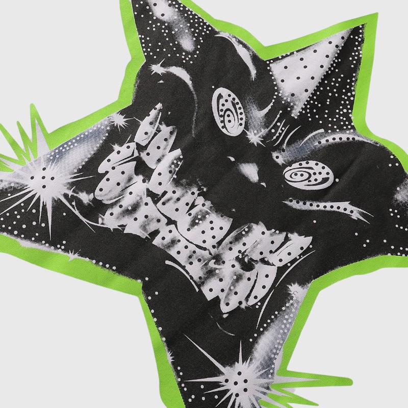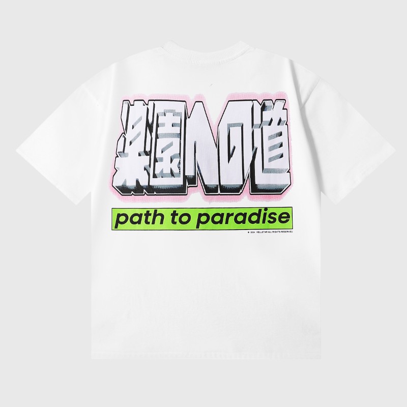 • Vibrant Neon Green Outline: The entire star graphic is powerfully outlined in a bright, electrifying neon green, creating a striking contrast against the black and white design and the white base of the shirt. This vibrant border gives the design an intense glow and undeniable Hellstar aesthetic.