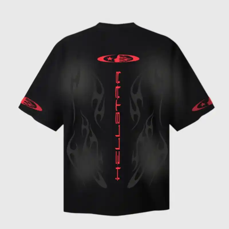 • Premium Soft-Touch Fabric: Made from a high-quality, breathable cotton blend, this Hellstar t-shirt feels incredibly soft against the skin. It drapes beautifully, enhancing the flared design while ensuring maximum comfort for all-day wear.