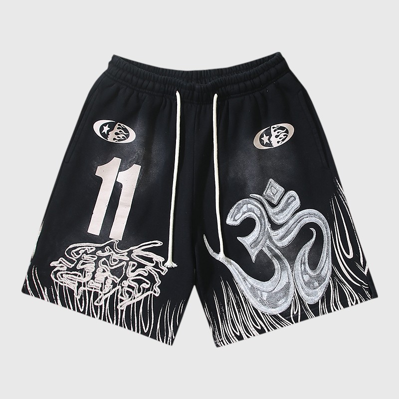 - Bold “11” Graphic: One leg features a large, distressed “11” graphic in black, adding a touch of numerological significance or a sports-inspired aesthetic. This distinctive number makes the Hellstar shorts easily recognizable.